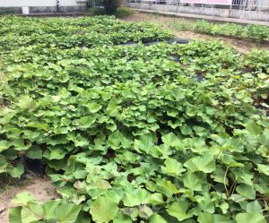 中庭でさつまいもを育て、
