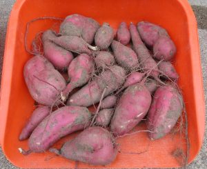 中庭でさつまいもを育て、