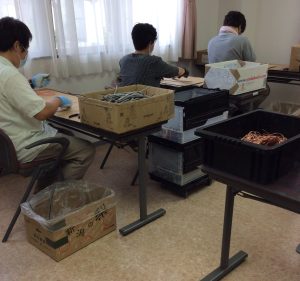 ・廃電線の被覆線の剥離作業 ・米山自在館内の清掃作業